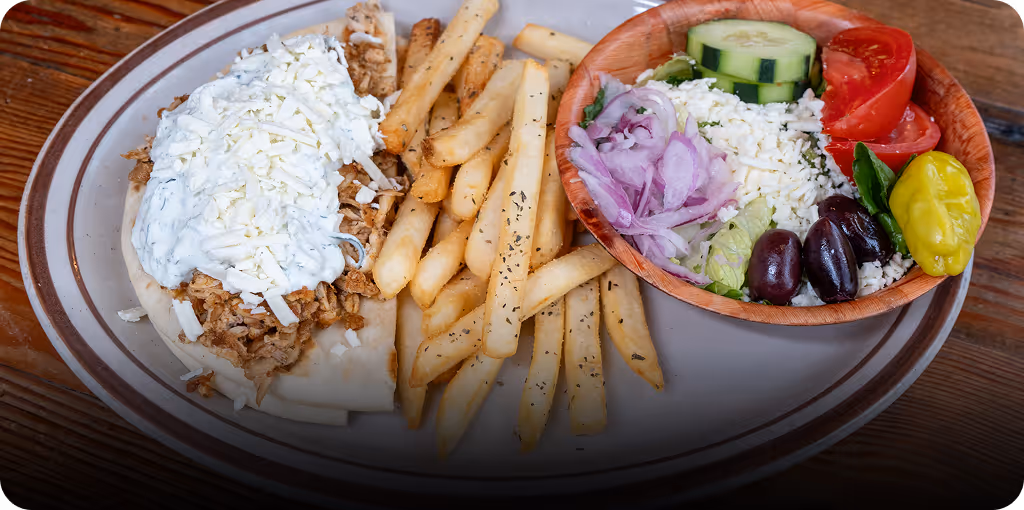 At Kafenio, we bring the heart of a Greek diner into today’s rhythm / bright, welcoming, and full of flavor. From all-day breakfast to fresh salads and gyros, every plate is made with care and a touch of Mediterranean sunshine. Come for the food, stay for the vibe.
