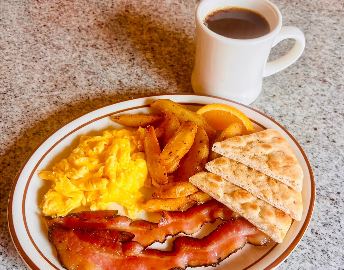 Coffee, All Day Breakfast, Gyros, Salads and Wraps, Beer and Wine.